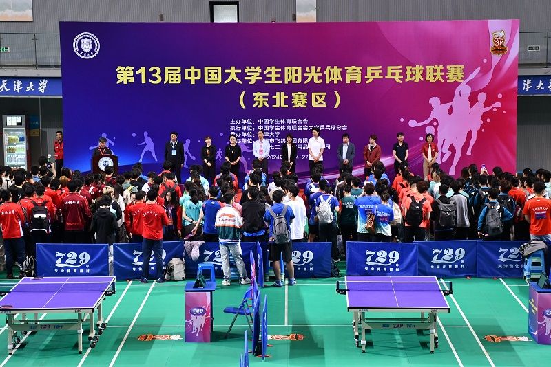5月25日上午,第13届中国大学生阳光体育乒乓球联赛(东北赛区)在天津大学卫津路校区体育馆开幕。天津大学党委副书记雷鸣,天津市体育局副局长李珊,中国学生体育联合会大学乒乓球分会秘书长、上海交通大学体育系主任王坤,天津市飞鸽集团有限公司党委书记、董事长韩桂友,乒乓球世界冠军刘伟,冯天薇,朱雨玲,赛事负责人、南京信息工程大学体育部主任白洁等出席开幕式,本次开幕式由体育部党总支书记、主任吴金克主持。