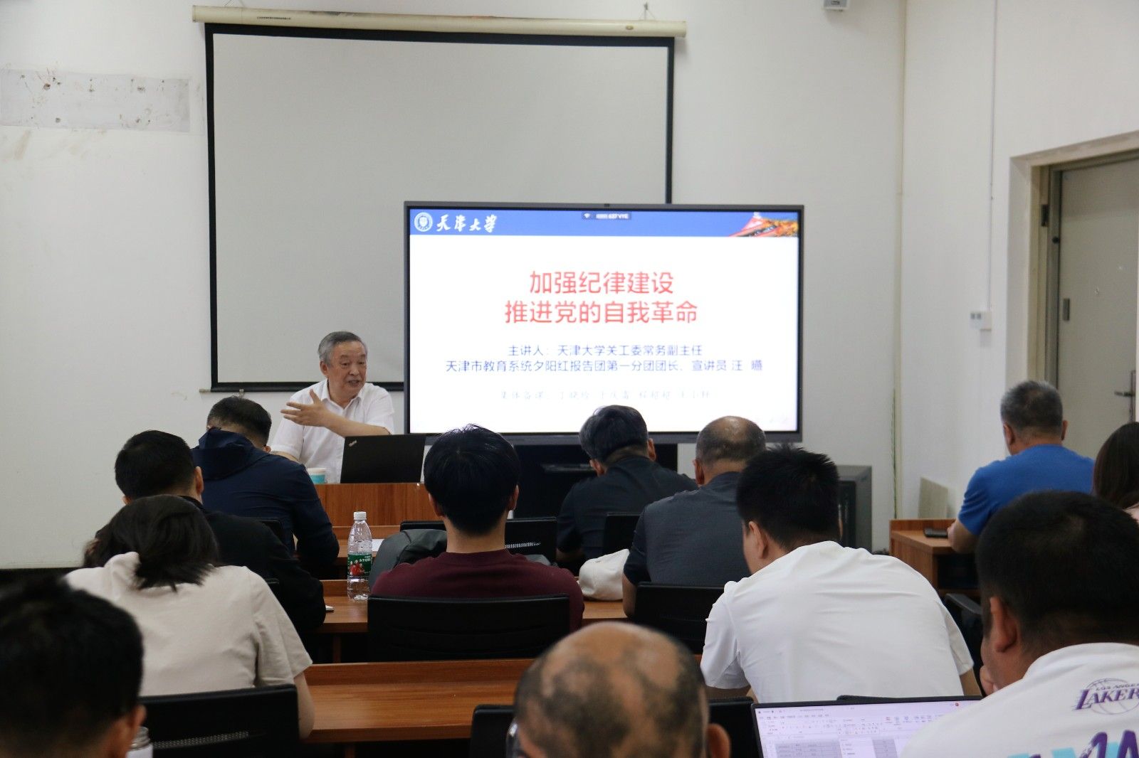 本站讯(通讯员 马宏彪)为扎实推进党纪学习教育,实现党纪学习教育全覆盖,5月17日,体育部党总支举办党纪学习教育专题辅导报告暨分党校培训班。会议邀请天津大学关工委常务副主任汪曣作题为“加强纪律建设,推进党的自我革命”的专题辅导报告,体育部和场馆中心全体教职工参加辅导报告会,报告会由党总支书记、主任吴金克主持。