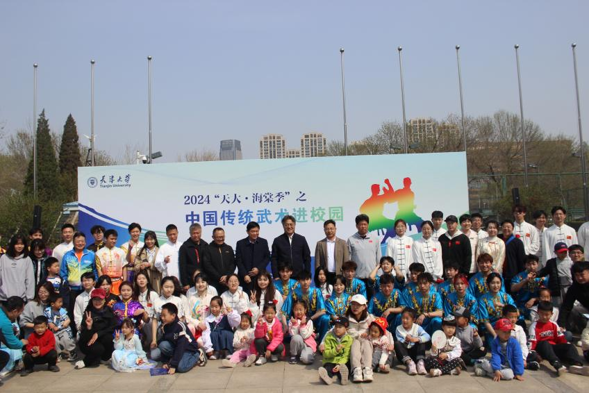 本站讯 4月5日,卫津路校区体育广场举办中国传统武术进校园活动,中国学生体育联合会武术协会秘书长、中国武术协会副主席、天津市武术协会主席苏长来教授受邀参加活动,校党委副书记韩庆华出席活动并发表致辞,活动吸引了众多师生和武术爱好者驻足观看。