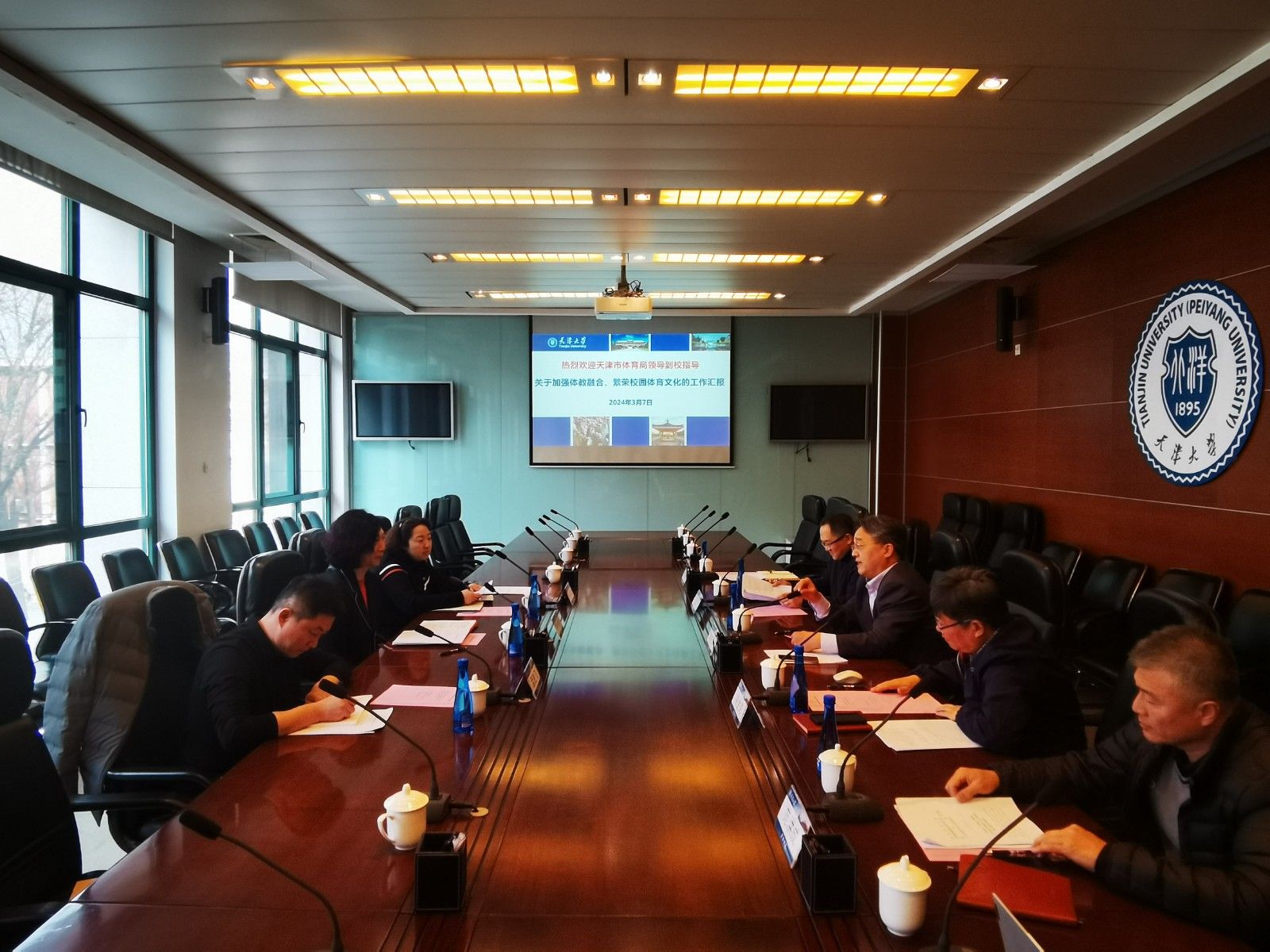 李珊对天津大学的热情接待表示感谢,并对天津市优势运动项目建设、运动员管理、运动项目宣传推广等工作开展情况进行了详细介绍。她指出,天津大学历史底蕴深厚、体育传统源远流长,近年来在学生体育运动队建设、体育教育改革和推进体教融合方面取得了丰硕成果。天津市体育局将持续支持天津大学体育事业发展,引导广大青年学生投身体育、热爱运动,促进学生身心健康发展。她希望,双方结合各自发展规划和优势体育教育资源,通过大学和城市之间的良性互动更好地推动体教融合,助力教育强国和体育强国建设。