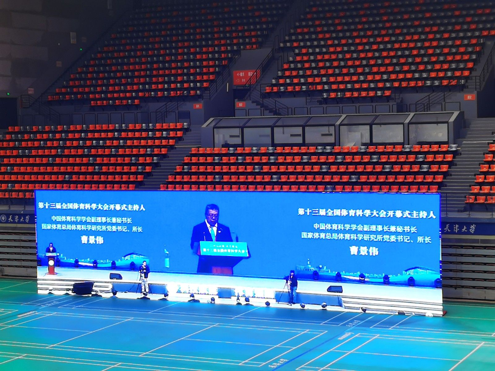 4日上午,学校组织参会的1000余名会议代表在卫津路校区体育馆共同收看了第十三届全国体育科学大会开幕式。