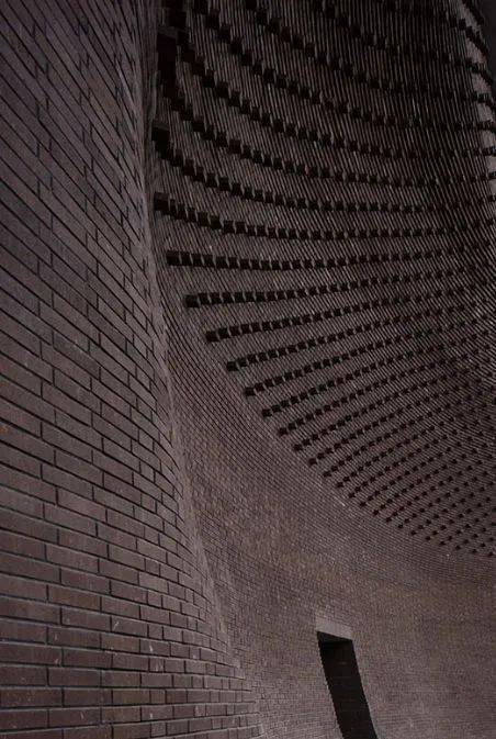 与炫目的结构形成鲜明对比的是朴拙的外观,建筑外立面在面对校园主要方向的西侧、南侧和北侧使用具有地方特色红色岩砖;在面对运动场的东侧采用了清水混凝土涂料饰面。建筑内部明露木模混凝土筑造肌理,裸露的结构产生的“建构”之美。